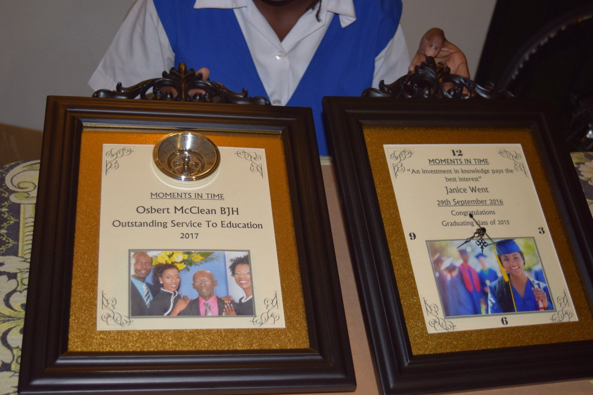 - A clock with plain mechanism where the hands are showing above the gift clock surface.